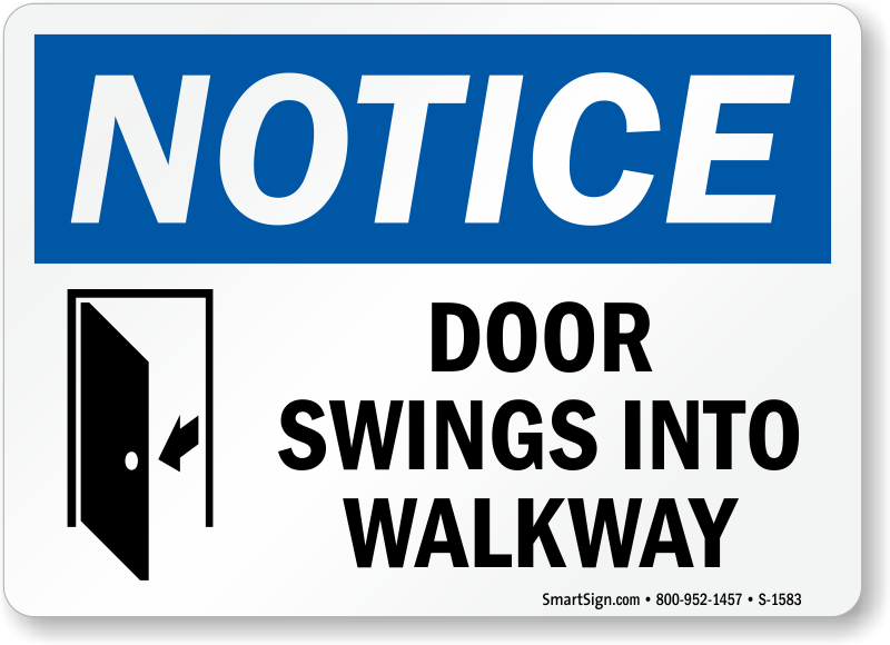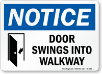 Warn people that they need to watch out as the door swings into walkway. The best way to communicate this message is by posting this high visibility OSHA Notice sign with graphic in the vicinity.