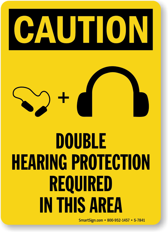 In some areas, sound levels are so high, they can only be combated with double hearing protection i.e. ear plugs and ear muffs. OSHA caution sign with easy to understand graphics makes your message clear.