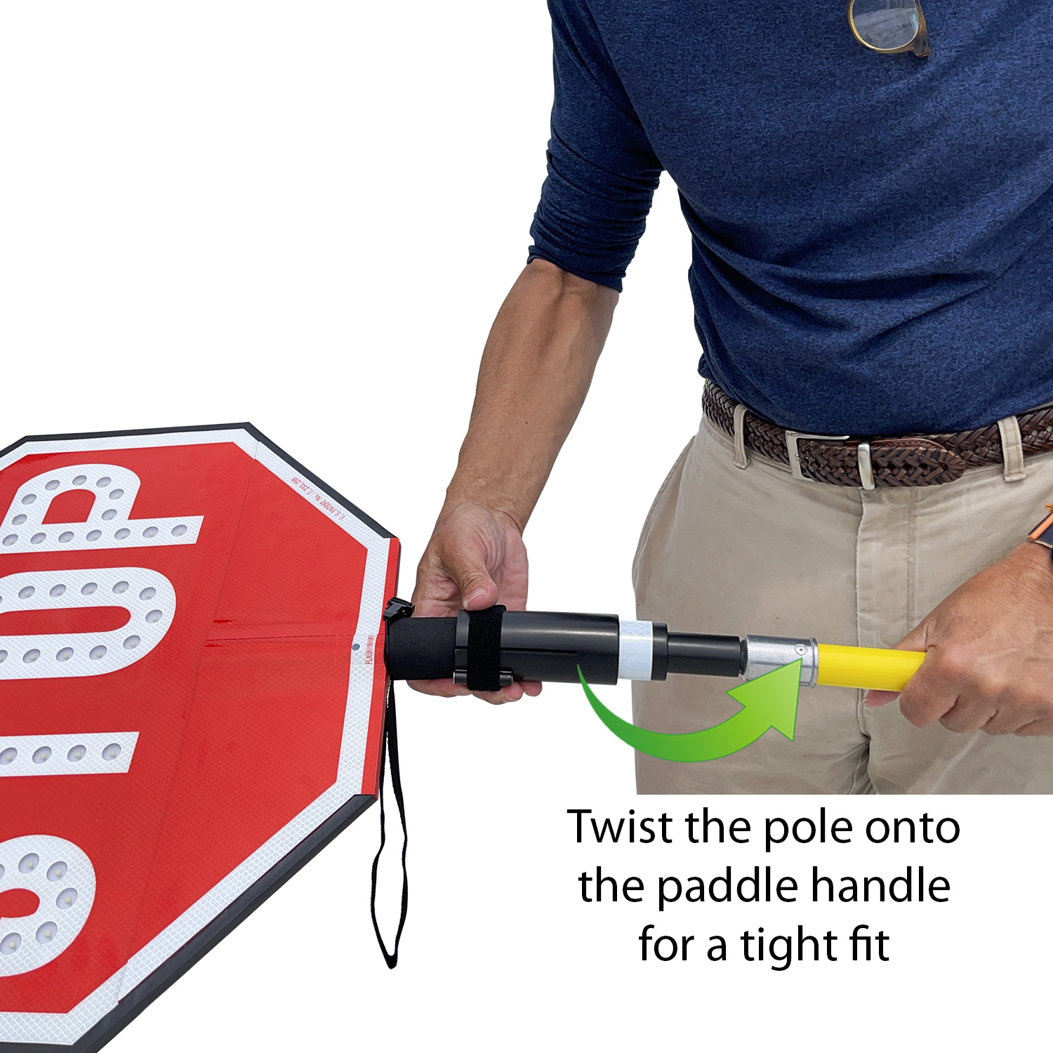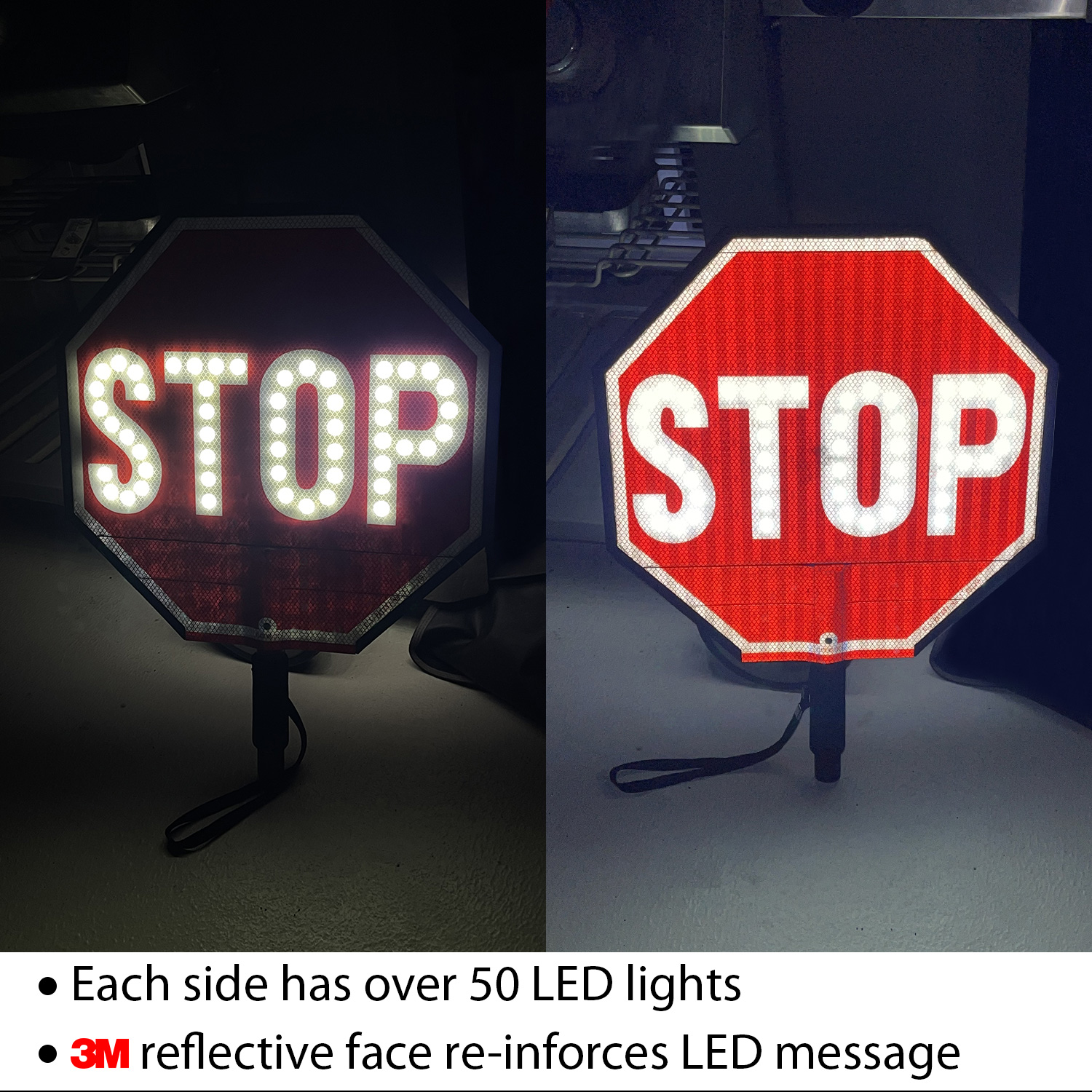 • In contrast to other LED competitors,our paddles feature LED lights inside of the lettering. STOP and SLOW become easy to read – even from a great distance.