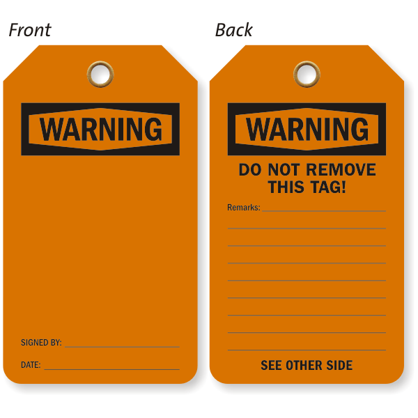 Our Double-Sided Self Laminating Blank Tag with OSHA Warning header is great for on-the-spot tagging procedures.