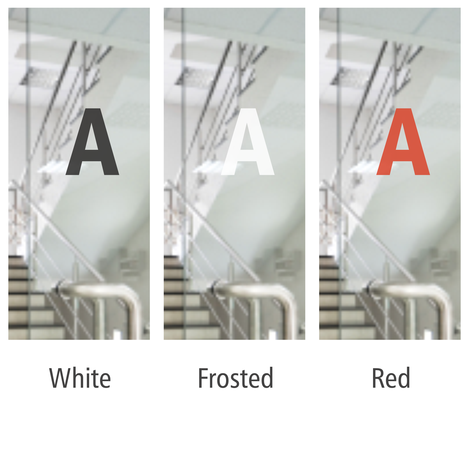 Labels are offered in a frosted color mimicking an "etched glass" look, or white, or red.