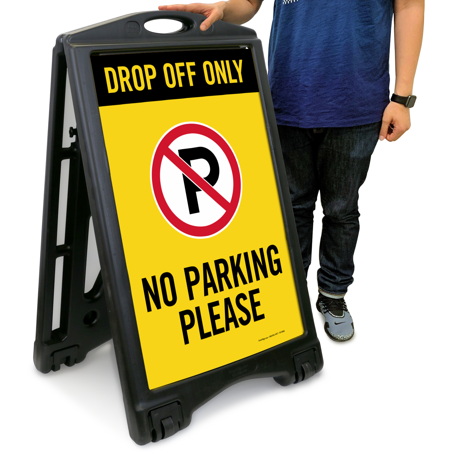 BigBoss A-Frame Portable Sidewalk Sign: Drop Off Only - No Parking Please (with Symbol)