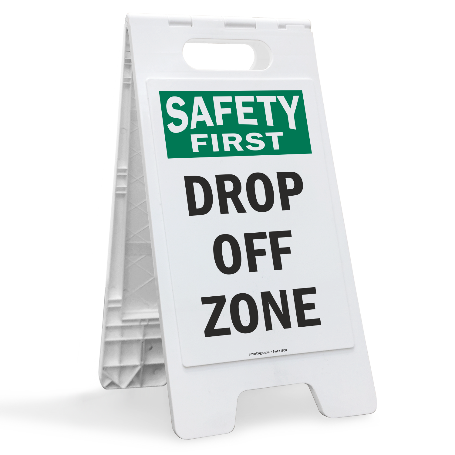This free-standing sign can be used for better safety at drop off locations in your facility. A sign is a constant reminder.
