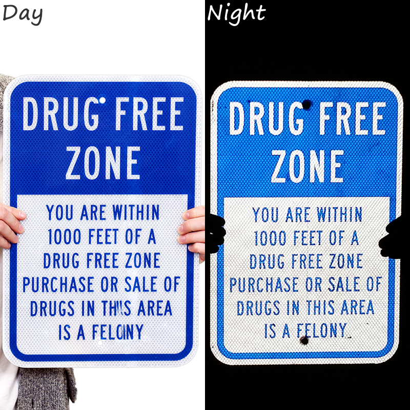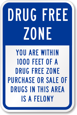 Drug Free Area Sign: Drug Free Zone - You Are Within 1000 Feet Of A Drug Free Zone Purchase Or Sale Of Drugs In This Area Is A Felony K-4154 Learn More...