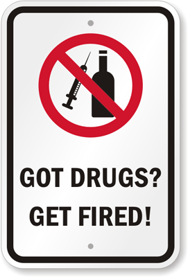 Drug Free Workplace Sign: Got Drugs? Get Fired K-6921
