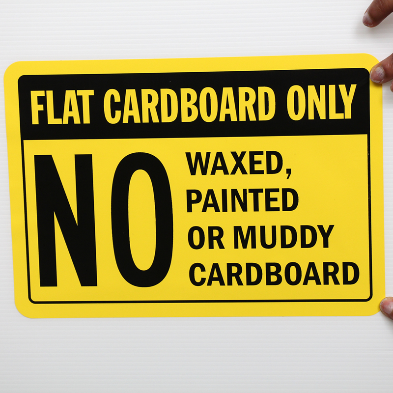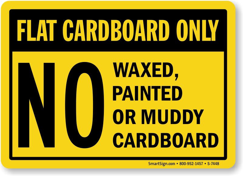 Dumpster Rules Sign: Flat Cardboard Only, No Waxed, Painted Or Muddy Cardboard S-7448