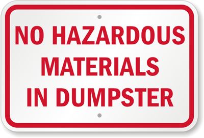 Dumpster Sign: Horizontal No Hazardous Materials In Dumpster K-7085