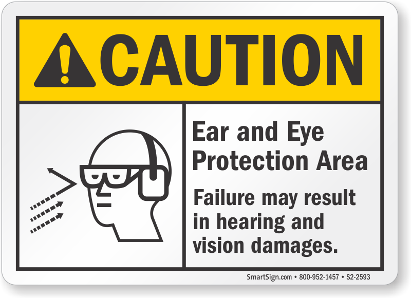 ANSI Caution Sign: Ear And Eye Protection Area, Failure May Result In Hearing And Vision Damages