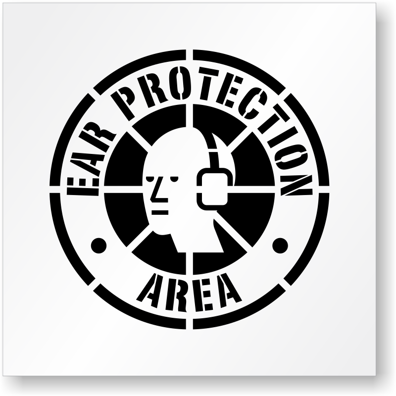 PPE Safety Floor Stencil: Ear Protection Area (with Wear Ear Muff Graphic) ST-0472
