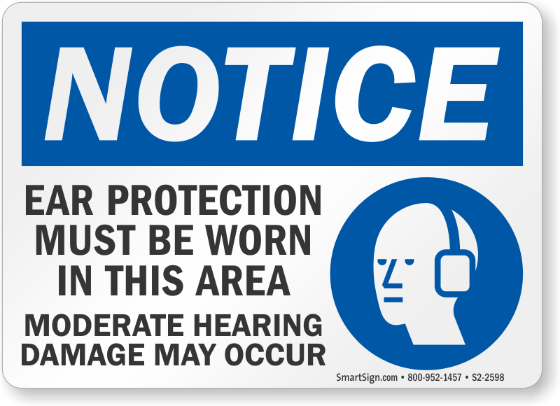 OSHA Notice Sign: Ear Protection Must Be Worn In This Area, Moderate Hearing Damage May Occur