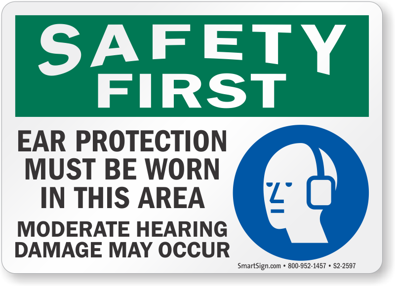 Safety First Sign: Ear Protection Must Be Worn In This Area, Moderate Hearing Damage May Occur