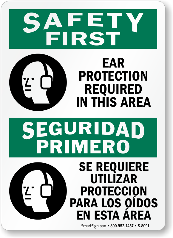 Exposure to hazardous noise can be serious. Use a Bilingual Safety First Sign to communicate workers they can't do away with ear protection.