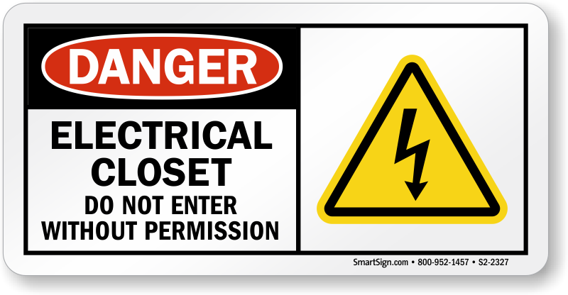 OSHA Danger Sign that is small in size easily fits in limited space. Sign makes sure electrical closets are not accessed by someone who has not taken permission.