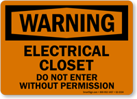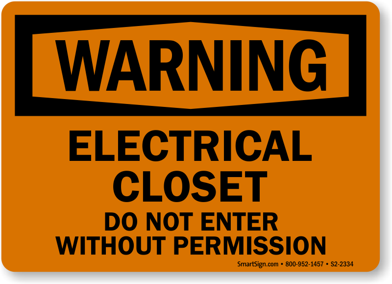 Make sure electrical closets are not accessed by an unauthorized person. This OSHA Warning Sign is clear and to-the-point.