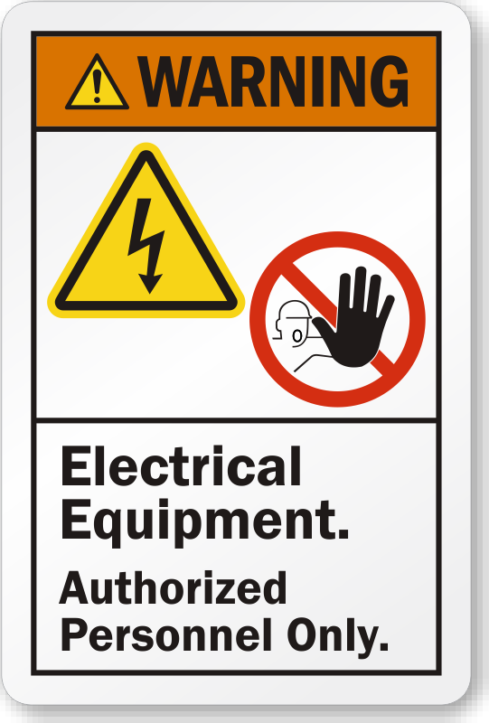 ANSI Warning Label: Electrical Equipment - Authorized Personnel Only (with Electrocution & STOP Hand Symbol) LB-2447