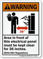 ANSI Warning Sign: Area in Front of This Electrical Panel Must Be Kept Clear for 36 Inches OSHA-NEC Regulations