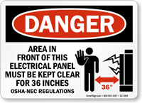 Ensure safety at facility with this OSHA Danger Sign to inform your employees to stay in an area 36 inches away in front of electrical panel.
