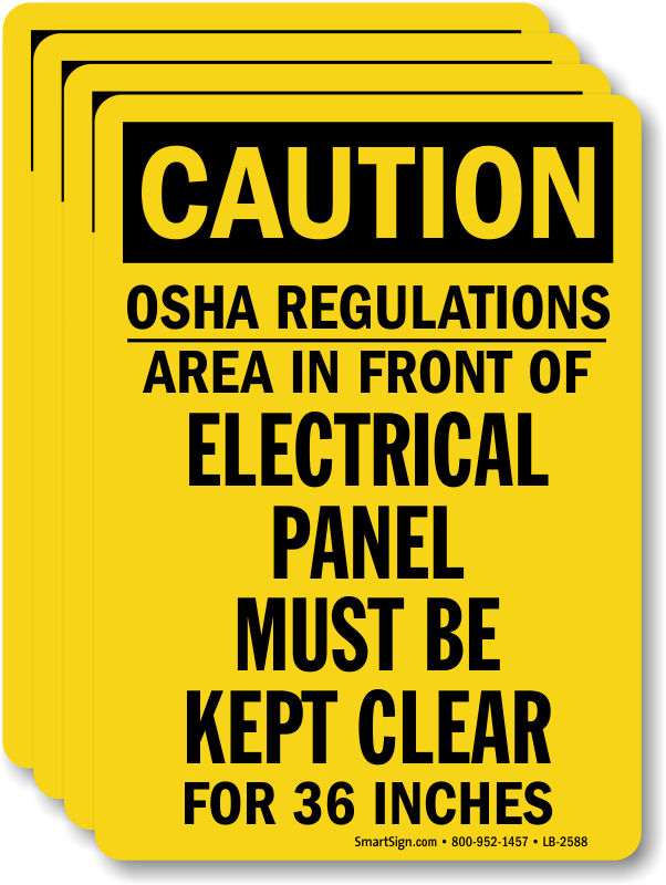 This OSHA Caution Label states a regulation laid by OSHA as well as NEC that guarded locations with live exposed parts should be kept clear at all times.