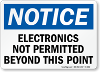 Electronics might be hazardous or interfere with certain operations in your facility. Install our OSHA Notice Sign to inform everyone that electronics are not permitted beyond a certain point and ensure a safe and comfortable environment.