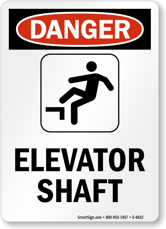 Elevator Danger Sign: Elevator Shaft (with graphic)