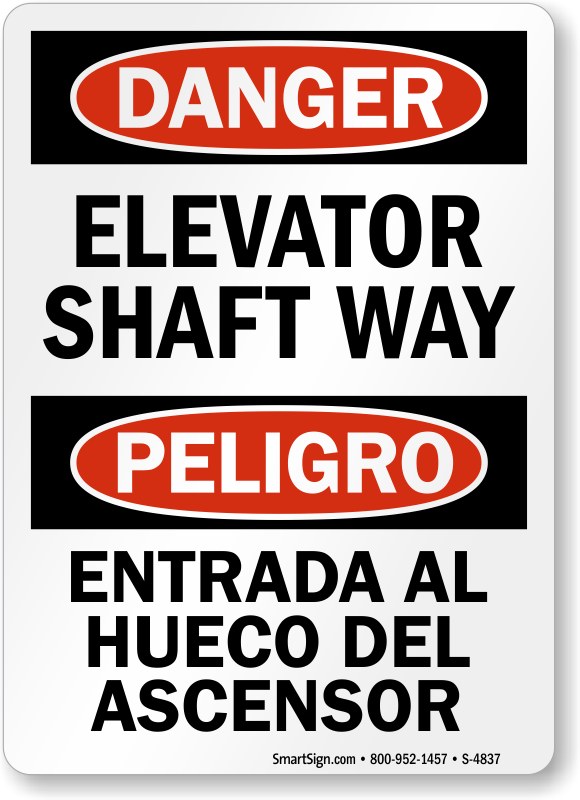 Bilingual Elevator OSHA Danger Si...