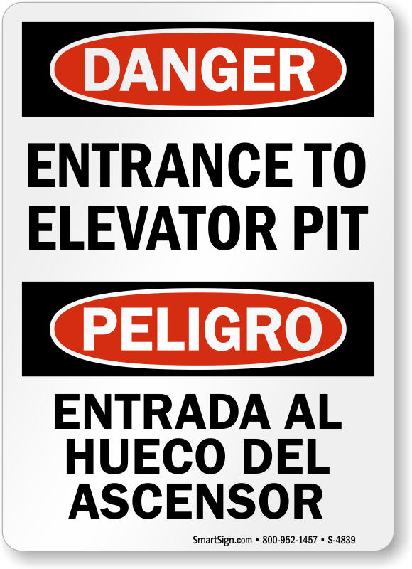 Make elevator safety a part of your plan. Use a "entrance to elevator pit (bilingual)" sign.
