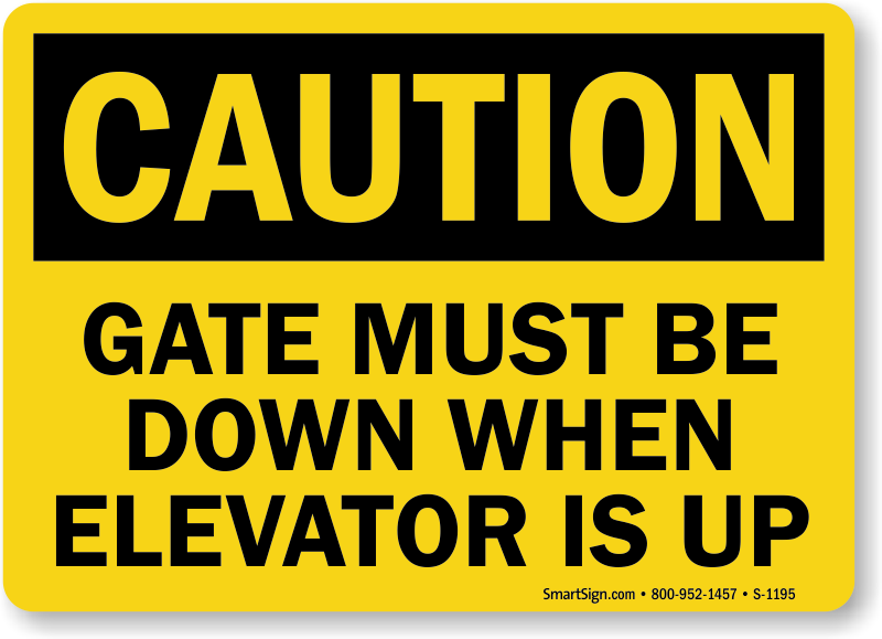 OSHA Caution Sign: Gate Must Be Down When Elevator Is Up S-1195
