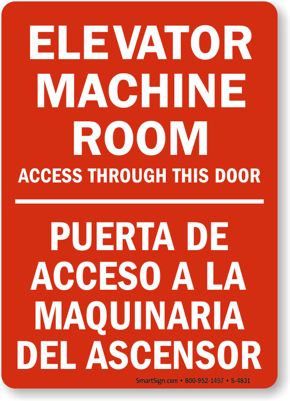 Make elevator safety a part of your plan. Use a "elevator machine room access through this door (bilingual)" sign.