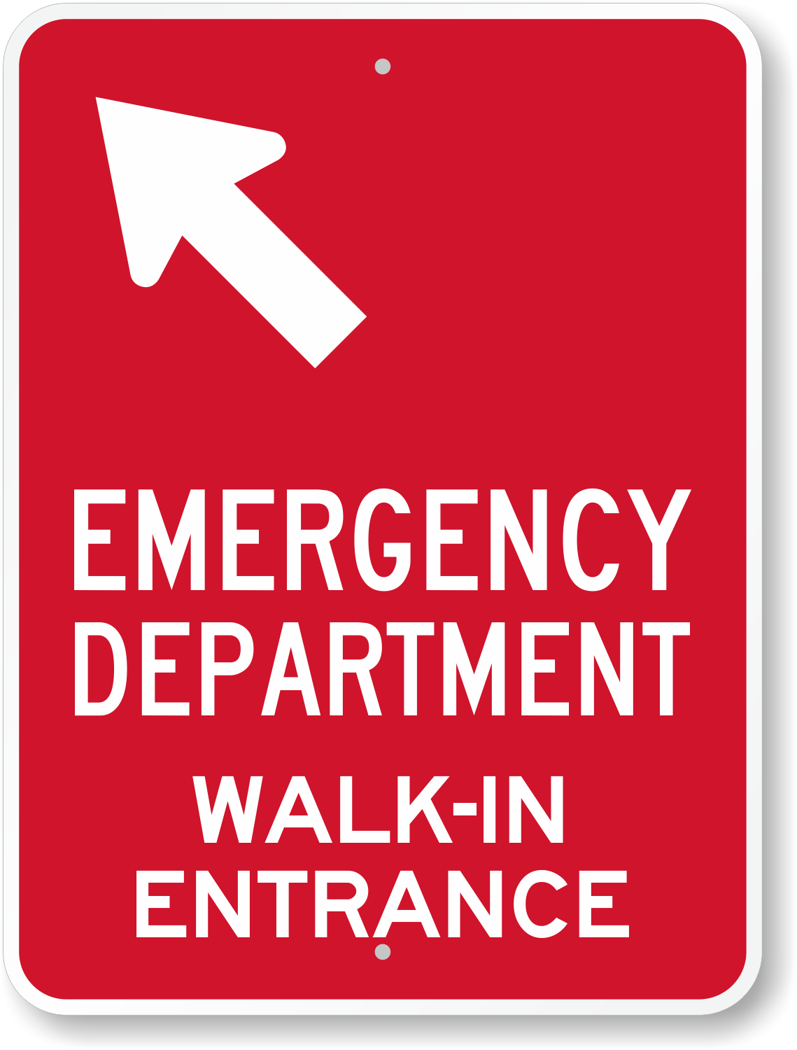 Emergency Sign: Emergency Department - Walk-In Entrance (Upward Diagonal Left Arrow) K2-5561