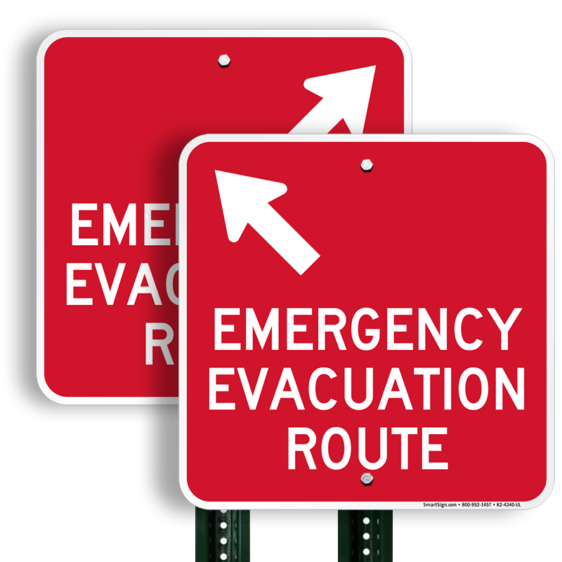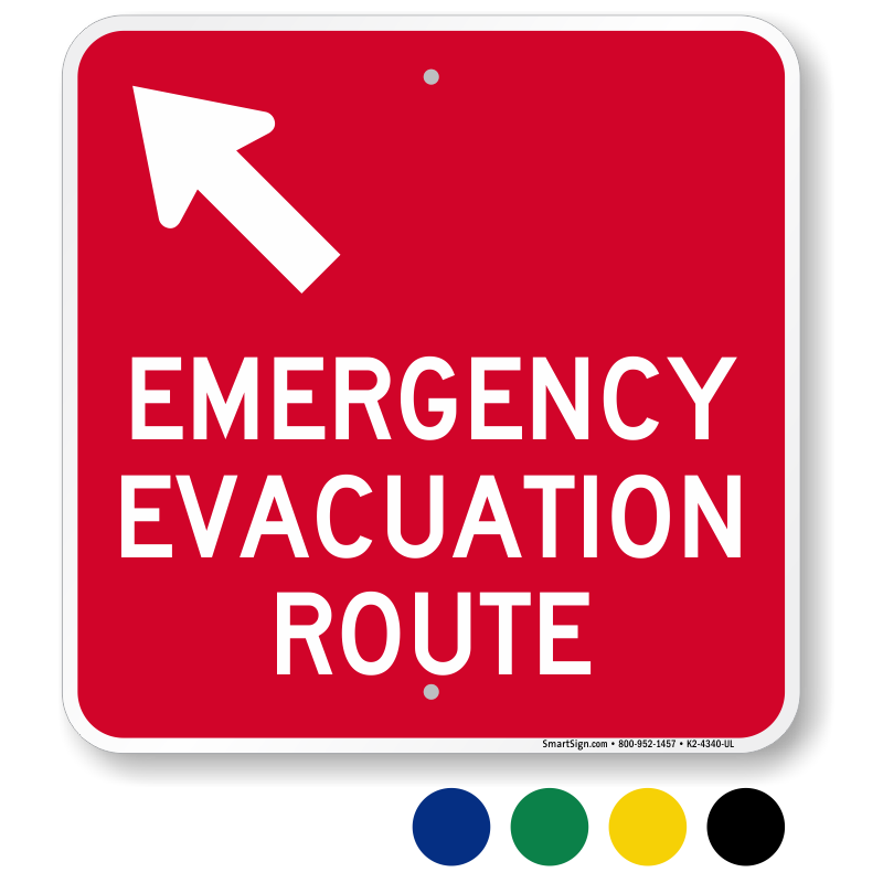 Evacuation Route Sign: Emergency Evacuation Route With Upper Left Arrow K2-4340-UL