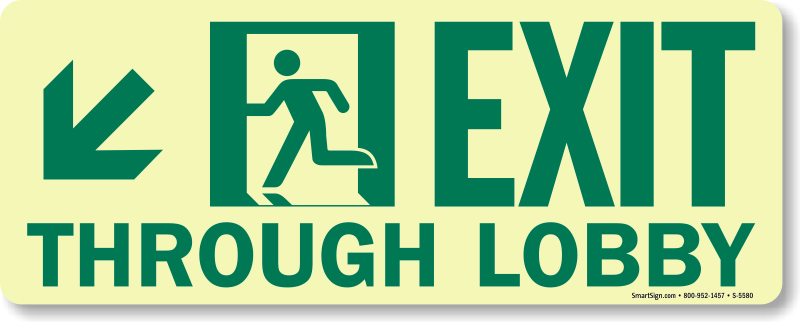Build safety awareness at all times. Post an "Exit Through Lobby" Sign to provide vital information.