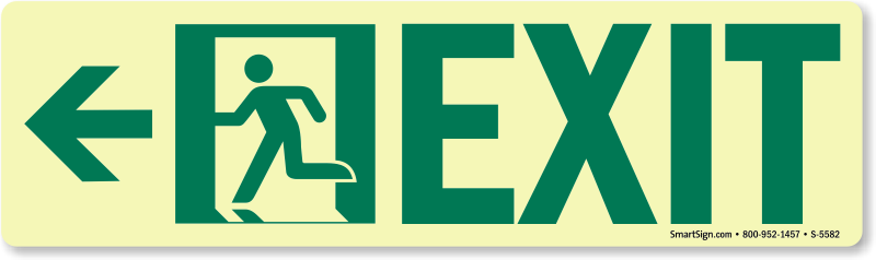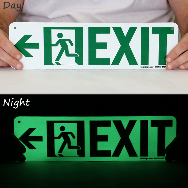 - This glow-in-the-dark Exit sign can point to safety in blackout conditions.