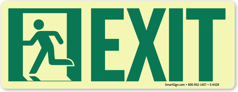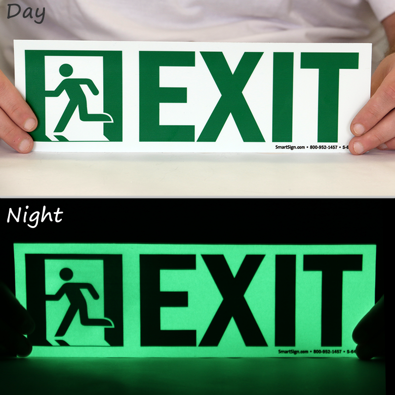 - This glow-in-the-dark Exit sign can point to safety in blackout conditions.