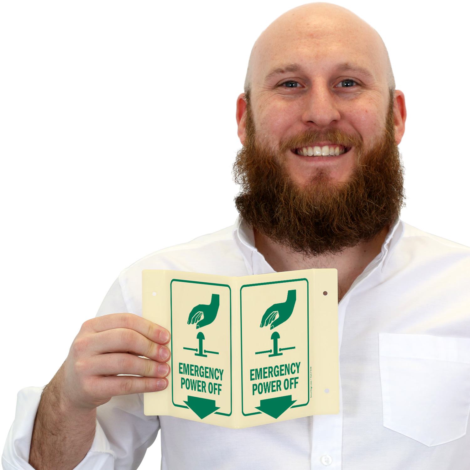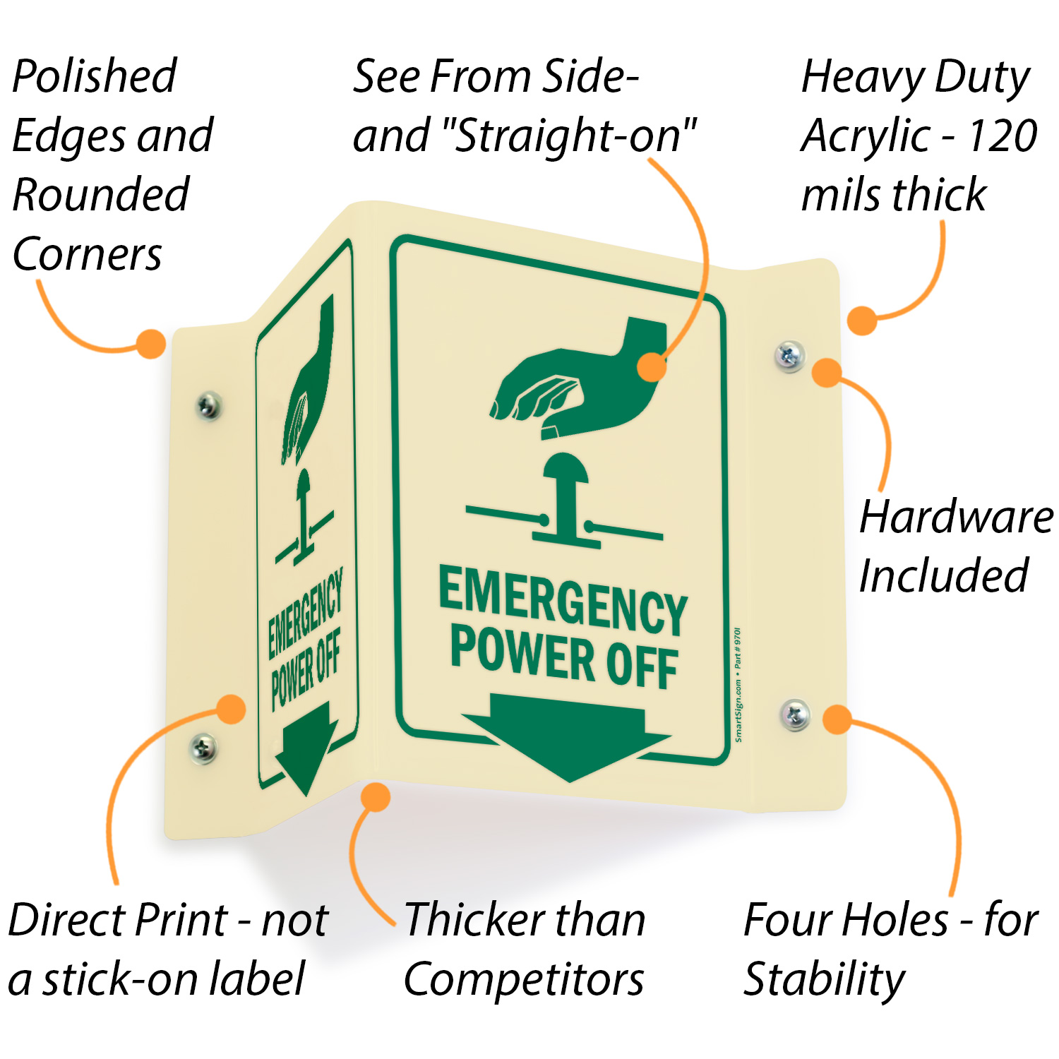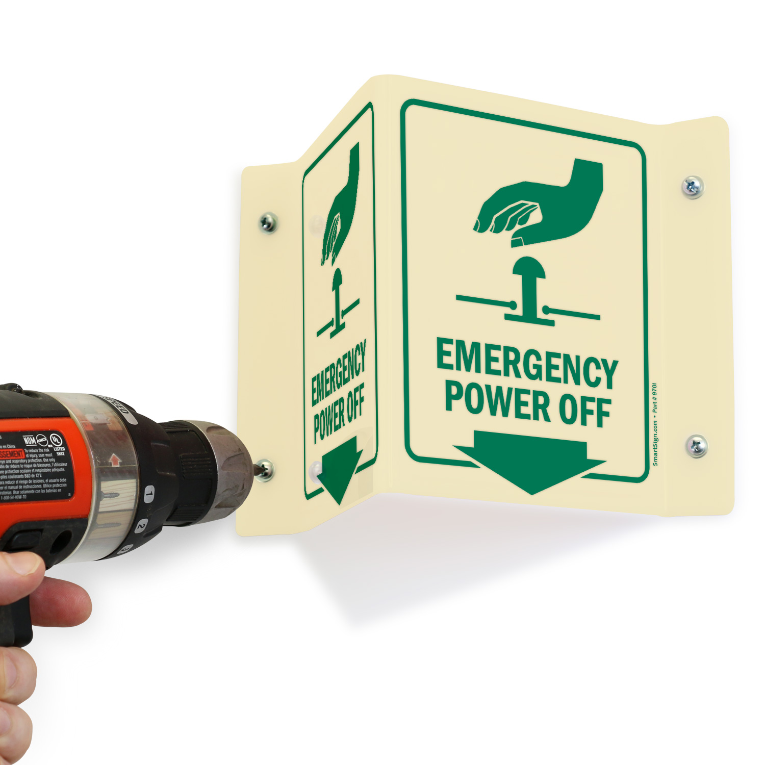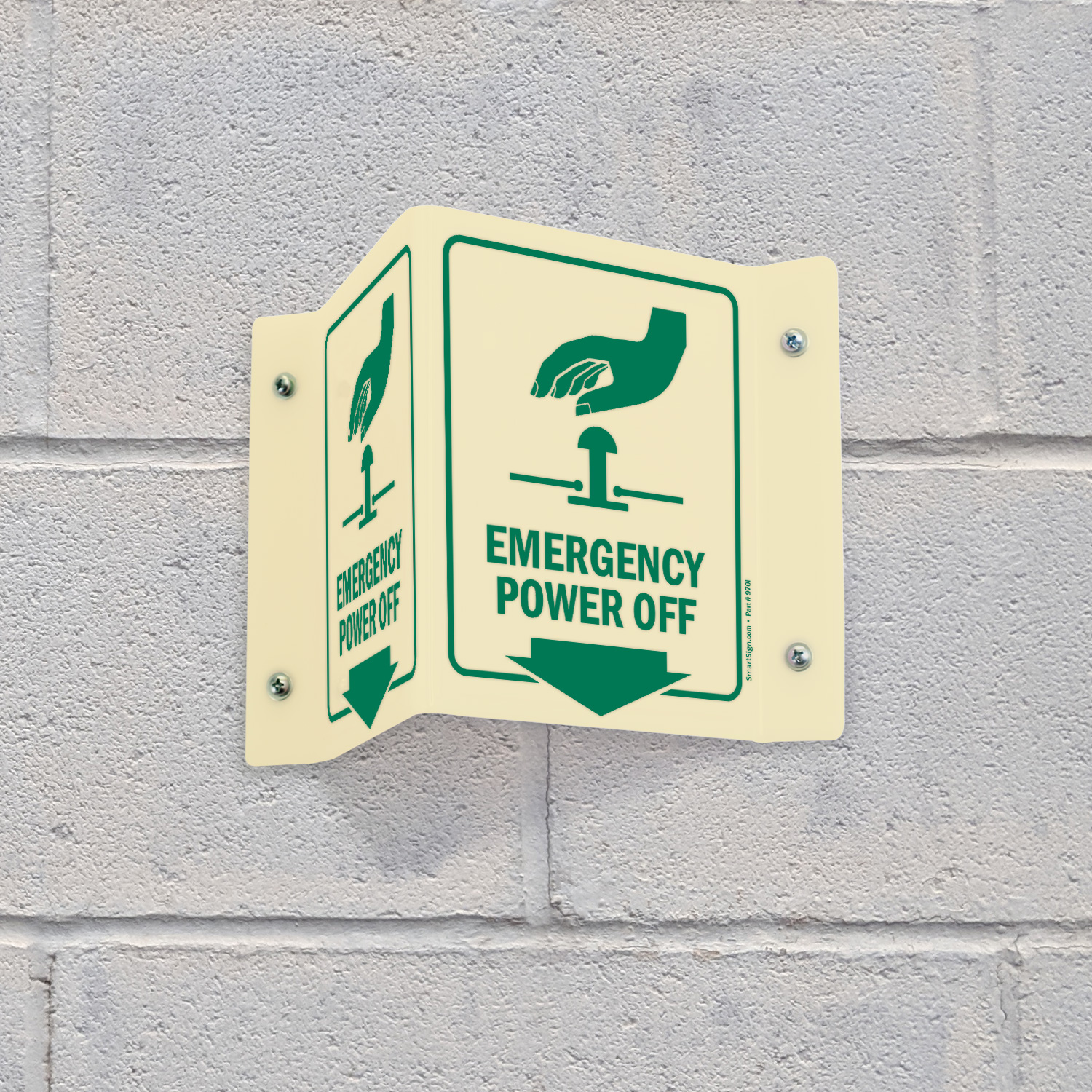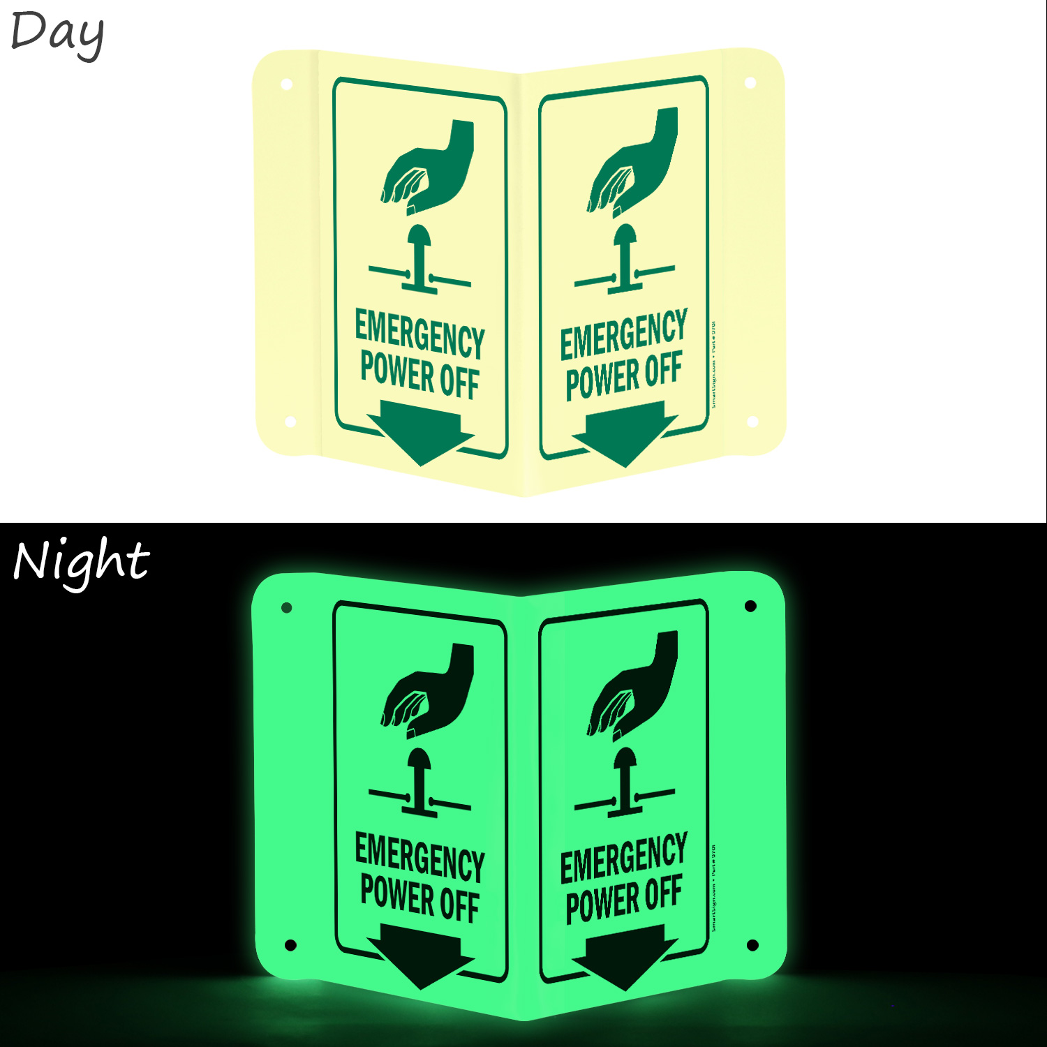 Glow-In-Dark Projecting Emergency Power Off Sign helps locate the stop button easily. Signs can save lives timely.