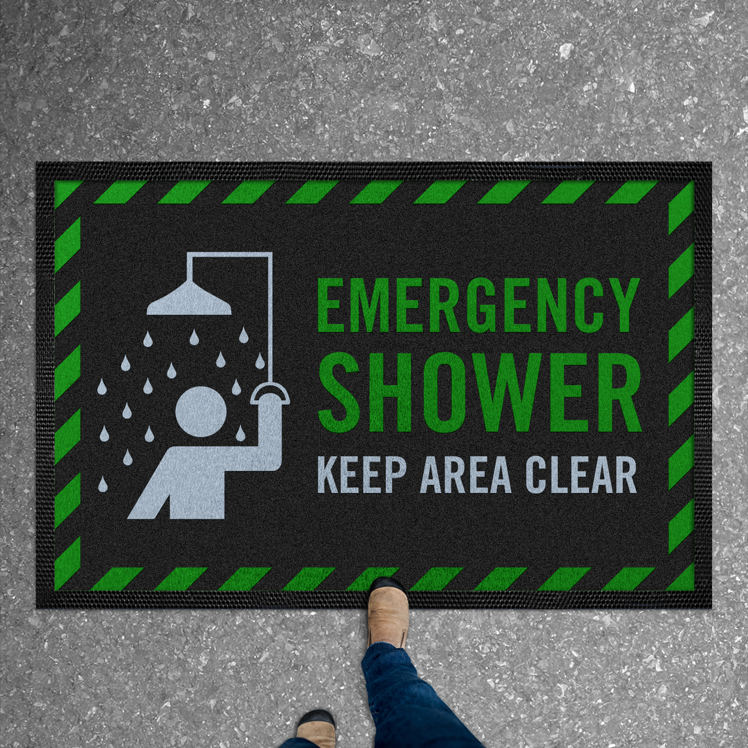 Safety Message Mat: Emergency Shower, Keep Area Clear