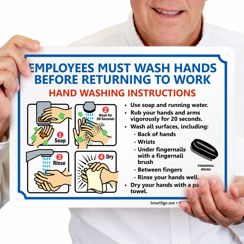 Germs linger on unclean and dirty hands! Prevent spread of germs in your office - encourage employees to wash hands in proper manner before returning to work.