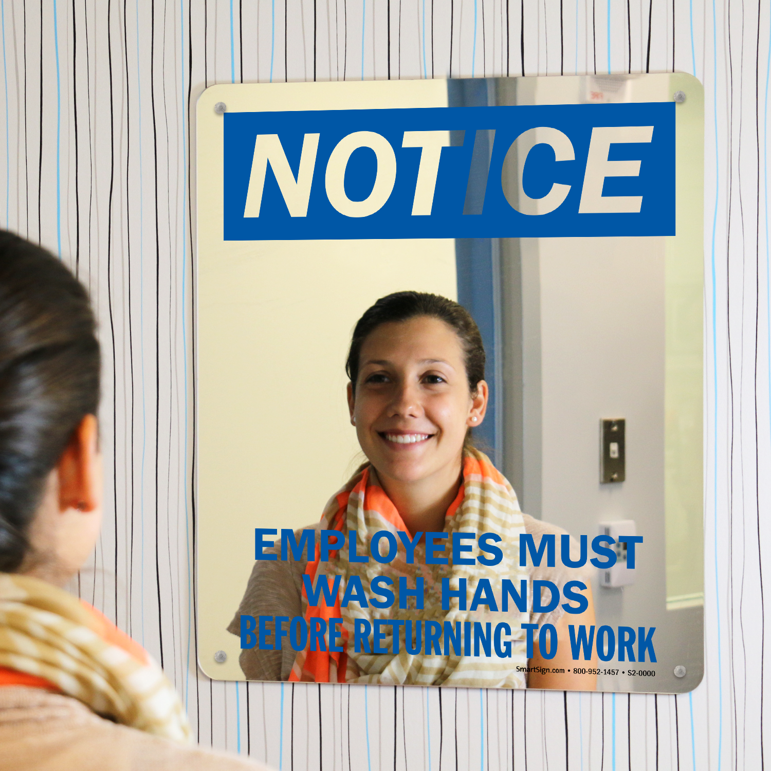 Mirror Hand Washing Message Sign: Employees Must Wash Hands Before Returning To Work S2-0797