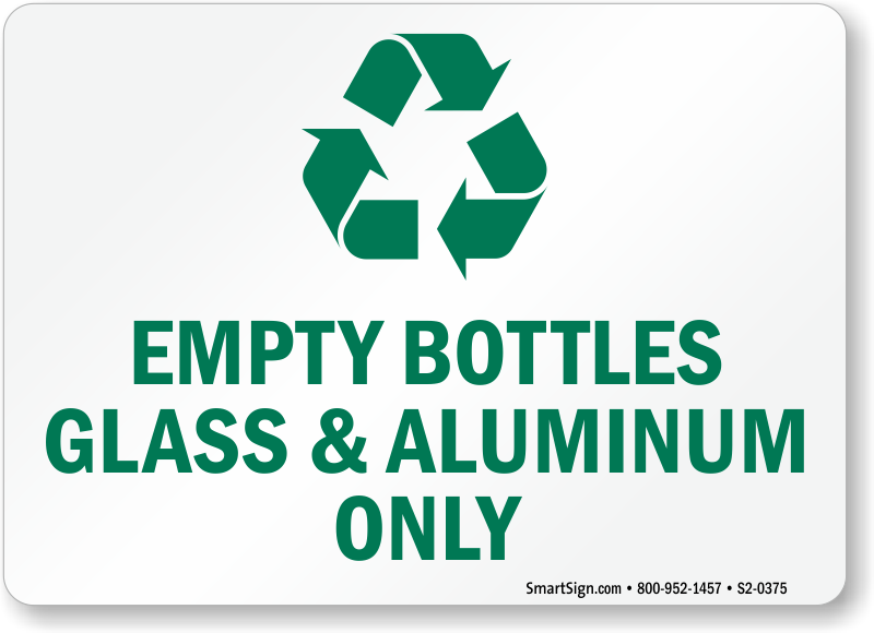 Remind where to dispose empty bottles made of glass and aluminum around your area with this recycling sign.