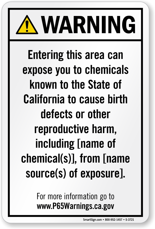 • To meet regulations, we may have to increase the size of your sign to feature your required chemical names and sources of exposure.