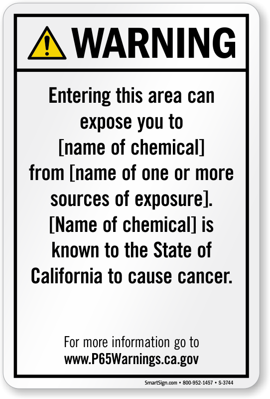 • To meet regulations, we may have to increase the size of your sign to feature your required chemical names and sources of exposure.