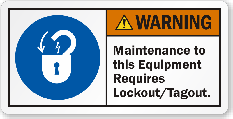 Sudden energization, start-up, or release of stored energy of an equipment during maintenance can injure the service personnel. Use this ANSI Warning Label to instruct workers to perform lockout/tagout before maintenance.