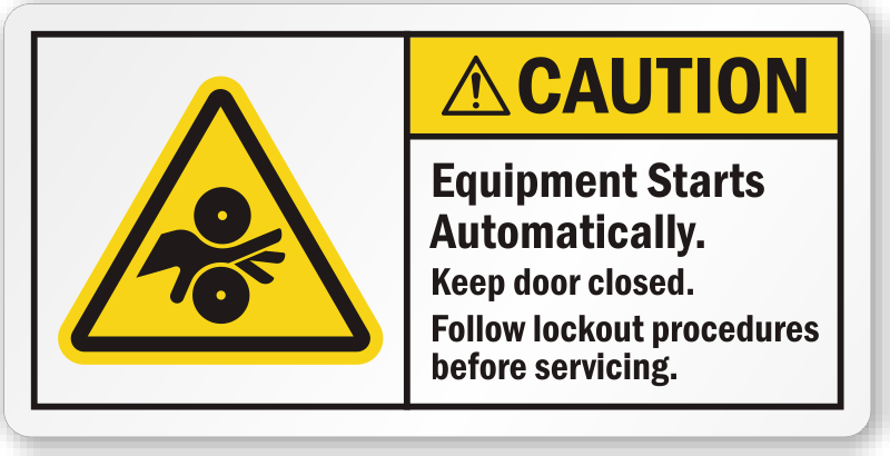 With our ANSI Caution Label, make sure workers carry necessary lockout procedure before servicing machinery.