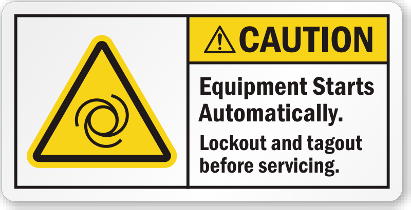 Apply this ANSI Danger Label conspicuously on the equipment and make sure workers never forget about lockout and tagout before servicing.