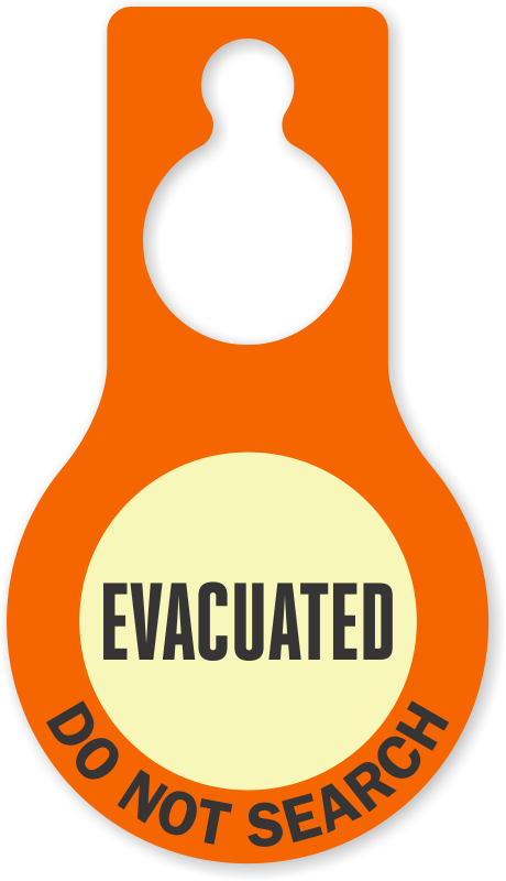 Pear Shaped Glow Plastic Door Hang Tag: Evacuated - Do Not Search TG-1507