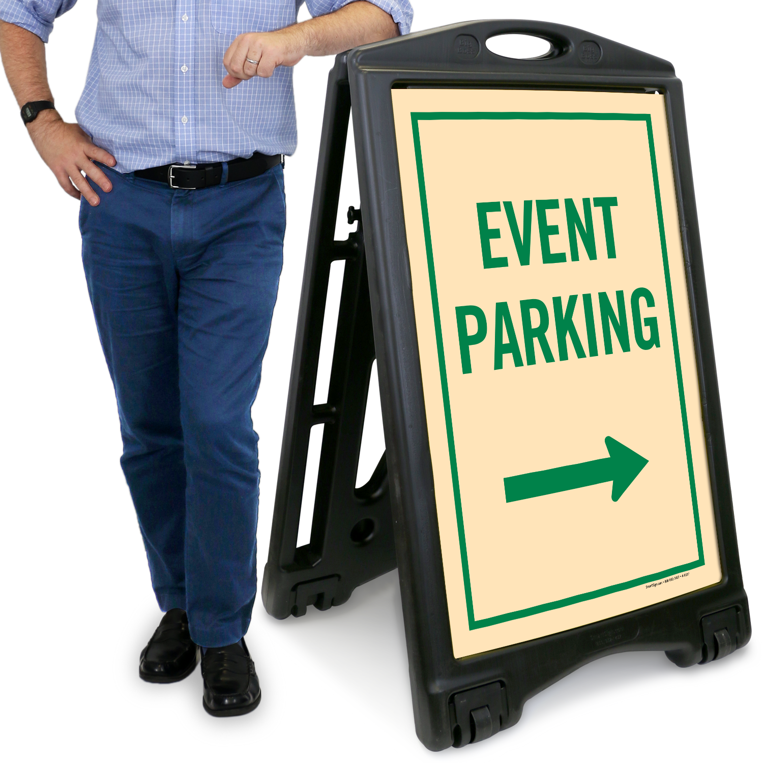 Place this portable Rolling Sidewalk Sign just at the entrance to the event area and direct guests to event parking.