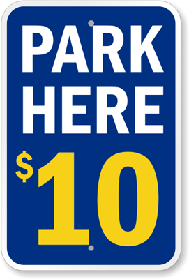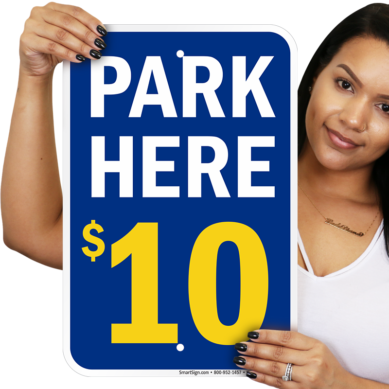 Pay Parking Sign: PARK HERE $10 K-7198-10 Learn More...