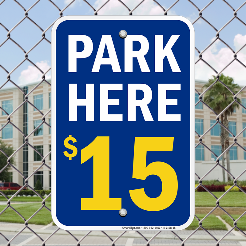 Pay Parking Sign: PARK HERE $15 K-7198-15 Learn More...