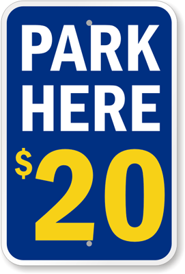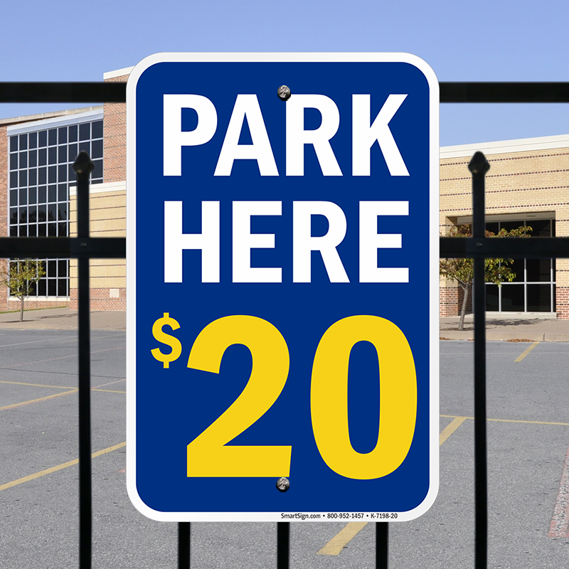 Pay Parking Sign: PARK HERE $20 K-7198-20 Learn More...