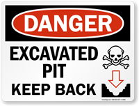 OSHA Danger Excavated Pit Sign: Excavated Pit Keep Back K-9385 Learn More...
