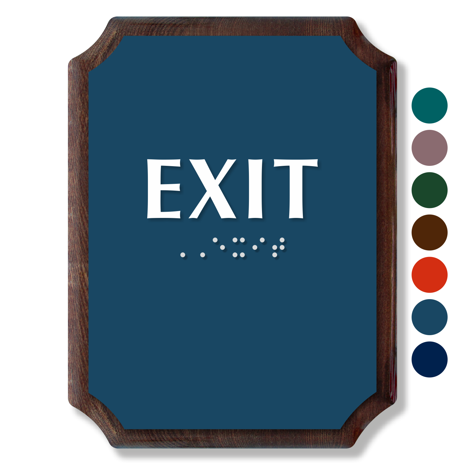 Mark exits in your facility with this premium Braille TactileTouchâ„¢ Wood Plaque that combines utility and style.